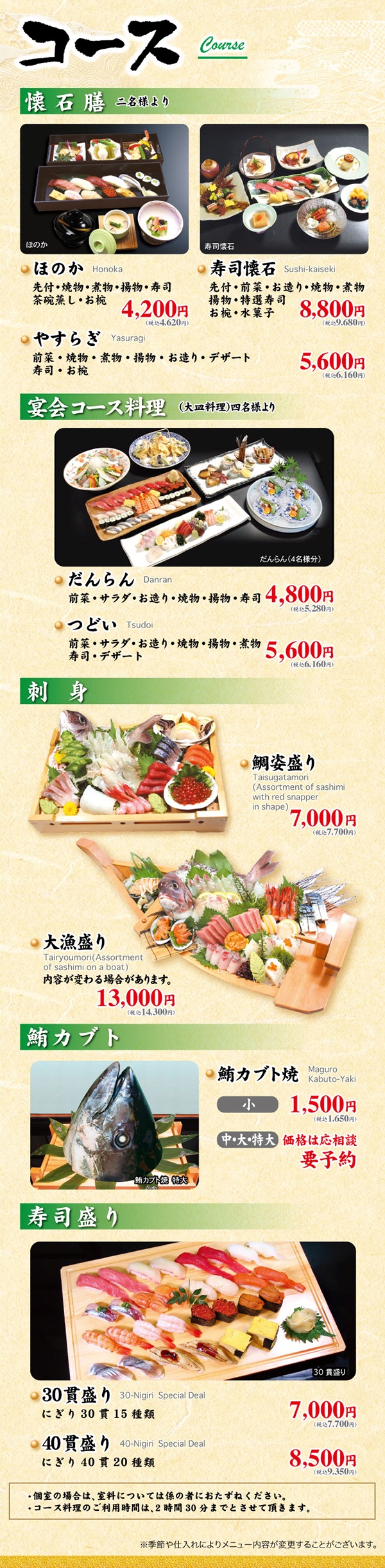 新館コースメニュー