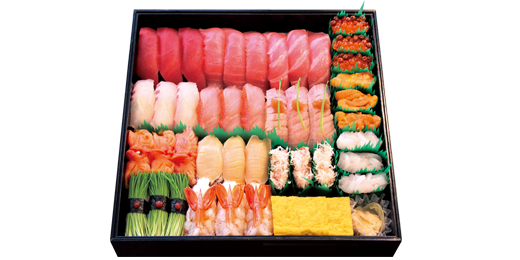<極上本鮪>大とろ・中とろ・芽ねぎ・上穴子・たい・いか・赤貝・数の子・うに・いくら・赤海老・あじ・玉子